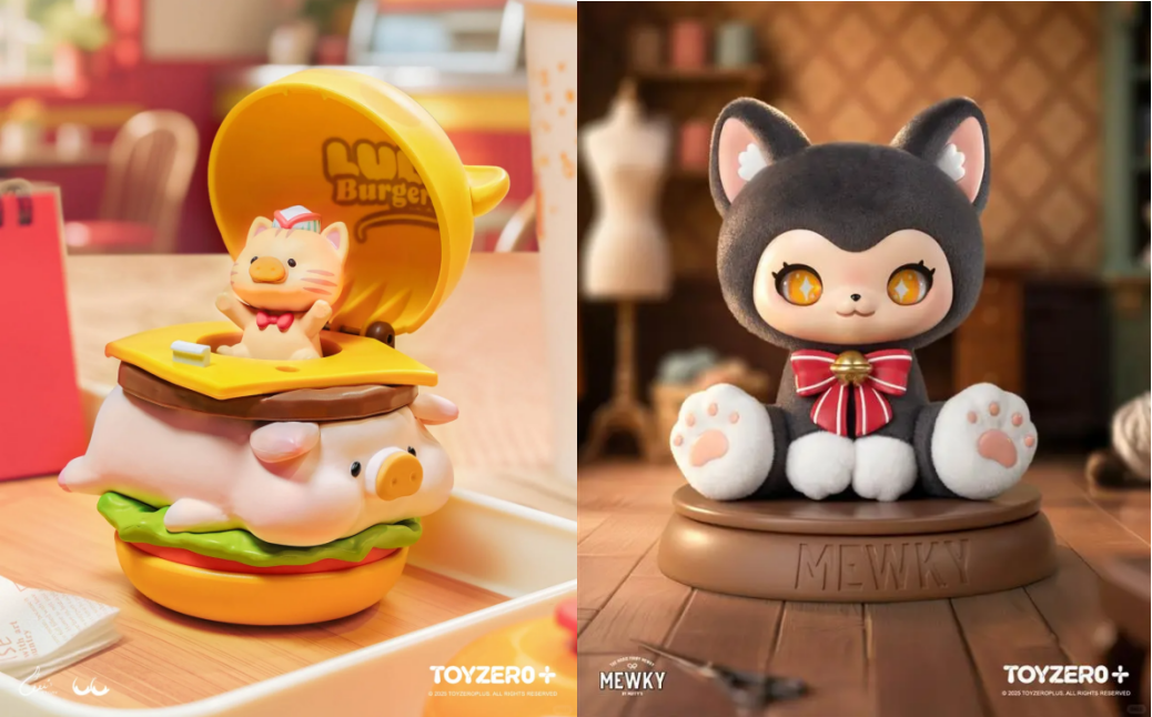 零加TOYZEROPLUS除了国际化的IP授权业务,对自身IP的孵化也不断追求创新度和趣玩性。旗下LuLu猪和MEWKY IP不断创新推出可玩性、实用性强的盲盒和周边,保持萌趣的同时,开发多元性,让玩家始终保持新鲜感和对IP的喜爱度。LuLu猪近期推出汉堡急送可动盲盒,每款盲盒都能解锁新玩法,让LuLu猪将有趣带来玩家身边。